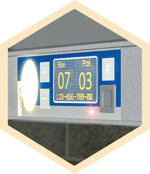 Using lights and digital displays installed on shelving units, bins, or racks, workers are guided visually in the selection of items from storage locations (Pick-to-Light) or in the placing of items into the correct bin, tote, or shelf, typically for order consolidation or packing (Put-to-Light).