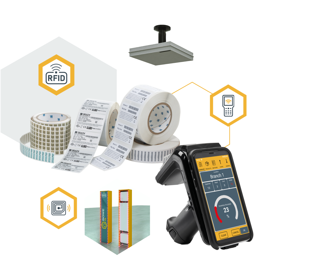 - RFID Readers (fixed or handheld) process the response from the RFID tag and send the data in real-time to the BOWE IQ software.