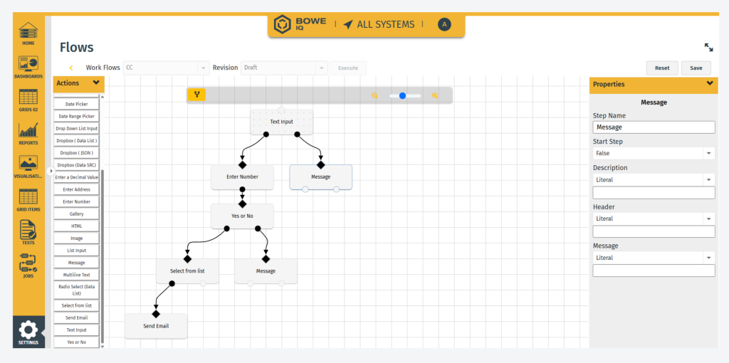 One of the absolute highlights of BOWE IQ’s Aspect software is the low code process that empowers non-IT users to create workflows with ease using visual intuitive tools in place of extensive code. As well as enabling much faster development, testing, and deployment, the easy-to-understand workflows can also be readily adapted, rolled out, and standardised across departments and sites.